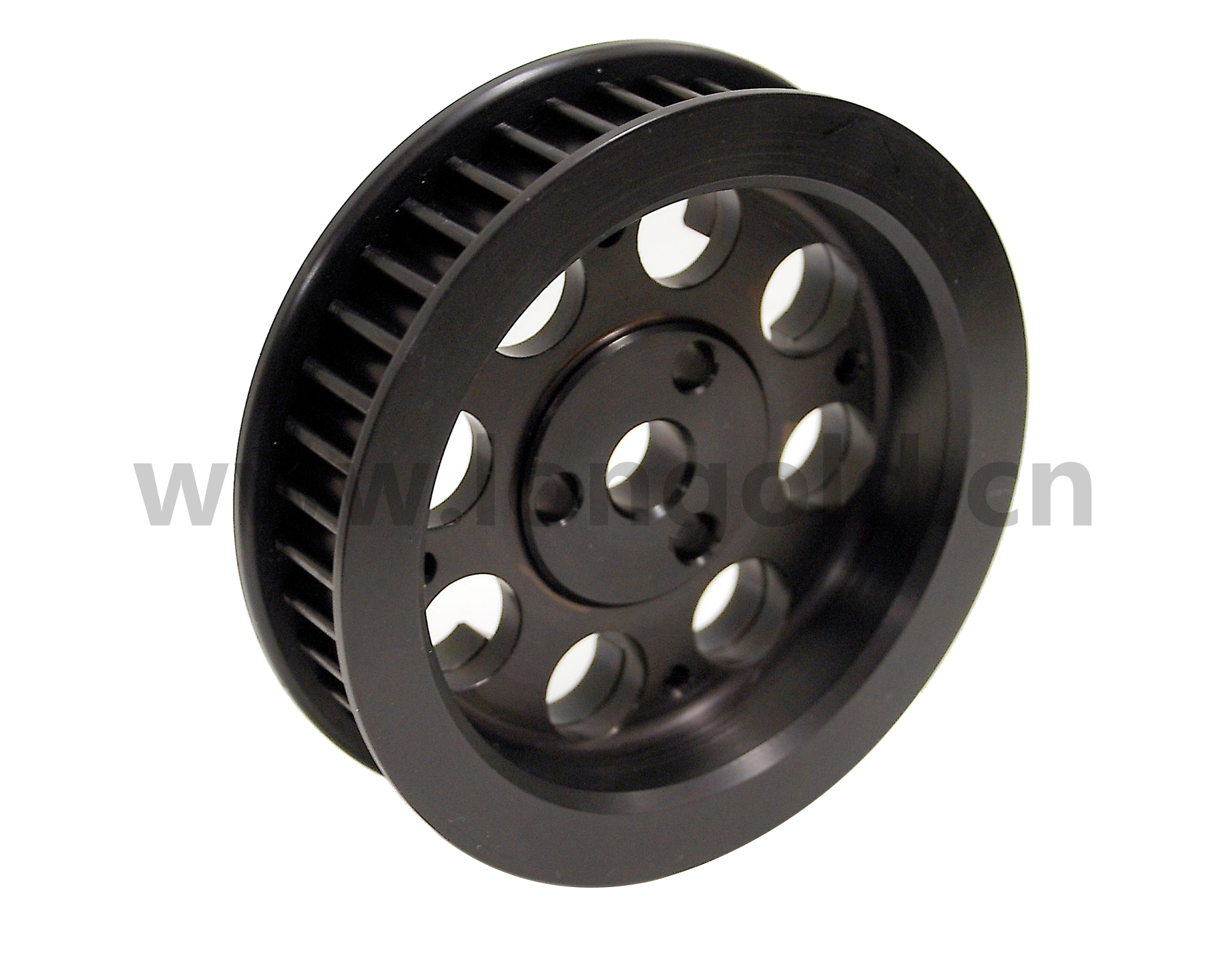 同步帶輪一般由鋼,鋁合金,鑄鐵,黃銅,等材料制造。內孔有圓孔,D形孔,錐形孔等形式。表面處理有本色氧化,發黑,鍍鋅,鍍彩鋅,高頻淬火等處理。精度等級依客戶要求而定。
