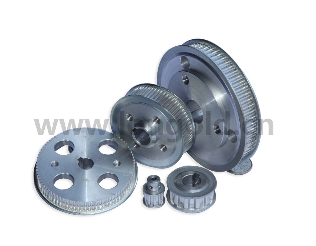 同步帶輪一般由鋼,鋁合金,鑄鐵,黃銅,等材料制造。內孔有圓孔,D形孔,錐形孔等形式。表面處理有本色氧化,發黑,鍍鋅,鍍彩鋅,高頻淬火等處理。精度等級依客戶要求而定。