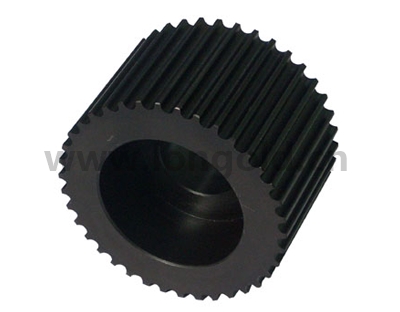 同步帶輪一般由鋼,鋁合金,鑄鐵,黃銅,等材料制造。內孔有圓孔,D形孔,錐形孔等形式。表面處理有本色氧化,發黑,鍍鋅,鍍彩鋅,高頻淬火等處理。精度等級依客戶要求而定。