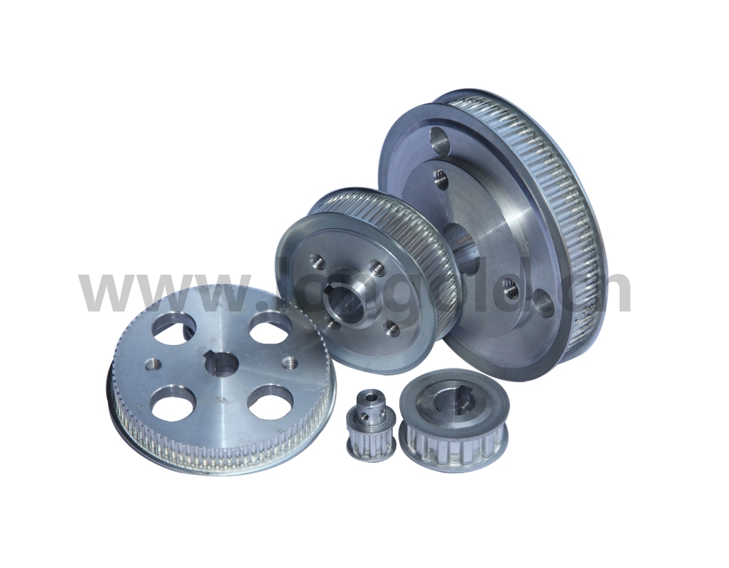 同步帶輪一般由鋼,鋁合金,鑄鐵,黃銅,等材料制造。內孔有圓孔,D形孔,錐形孔等形式。表面處理有本色氧化,發黑,鍍鋅,鍍彩鋅,高頻淬火等處理。精度等級依客戶要求而定。