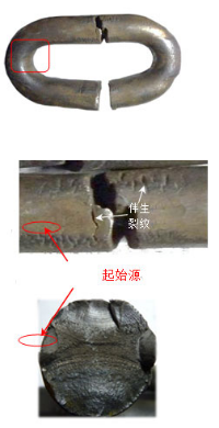 c. 鏈環斷口附近有時可見伴生裂紋。 如右圖所示: