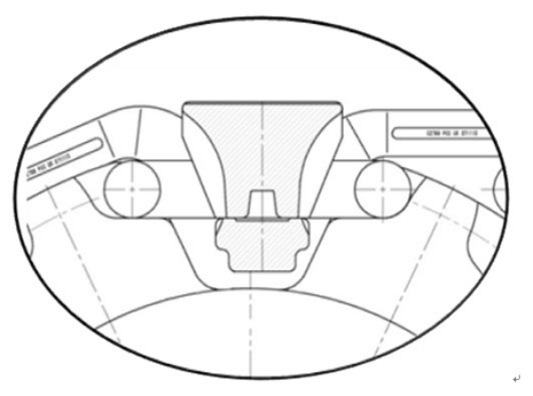 e. 第一次發現刮板下鏈環在直臂特別是焊接處斷裂時應給予足夠重視,這往往是過載彎曲疲勞的前兆,此時應重點檢查橫梁是否存在頻繁斷裂未被更換的情況;檢查橫梁、鏈環與鏈輪的嚙合情況;檢查鏈輪是否有異常磨損;檢查橫梁與鏈輪底面、輪齒側面間隙是否過小(見下圖);檢查是否存在跳輪、打滑以及橫梁是否被鏈輪架起等現象,一旦發現上述情況應及時更換新橫梁或新鏈輪。若無法找到確切原因,可將全部刮板錯移一個或兩個鏈環后觀察一段時間。