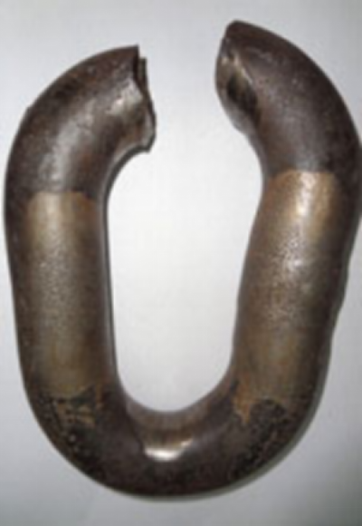 b. 斷裂位置均為鏈環直臂處, 多為焊接側直臂。如右圖 紅框區域所示: