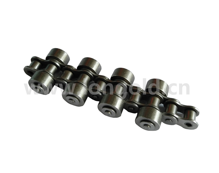 免加油小型輸送鏈的銷軸延長,在銷軸延長的部分安裝可自由旋轉的側置滾子的鏈條。