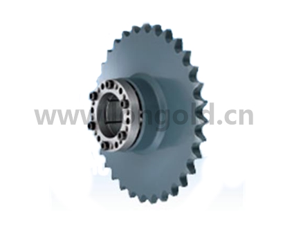 無鍵聯結一體化的鏈輪。利用錐形軸套的摩擦力無鍵聯結。