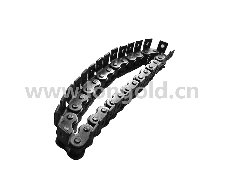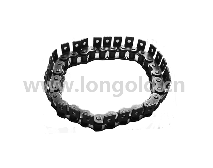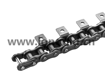 在A系列小型輸送鏈條的單側上帶有單孔折彎板的附件,附件型號表示為:A1。根據客戶需求定制不同節數帶附件的情況,例如1節帶附件,2節帶附件,3節帶附件,......, 10節帶附件,.......,等。詳情請咨詢敝司。