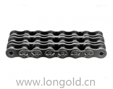 加重系列開口銷滾子鏈條,是指滾子鏈條每節連接處銷軸一端采用開口形式,用開口銷卡住以防外鏈片脫落。同時,這類鏈條的鏈板厚度等同于ANSI標準對應的下一級較大節距鏈條的鏈板厚度。在增加了鏈板的厚度的同時采用了開口銷結構,提高了鏈條抗沖擊能力,且鏈條每節都可以方便拆卸更換。此類鏈條特別適合應用在重負載的較為惡劣的工作環境中。
