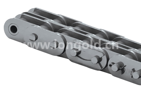 將B系列雙排傳動滾子鏈條的鏈板由"∞"字板改為直板形,直接將工件承載于鏈板之上進行輸送的鏈條。鏈輪可直接使用標準B系列雙排鏈輪。