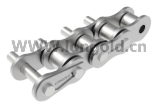 銷軸和滾子采用熱處理的硬化不銹鋼材,其他零部件都采用SUS304材質(zhì)的RS型鏈。最大容許張力為SS規(guī)格的1.5倍,但耐腐蝕性略微降低。鏈條的一側(cè)銷軸延長的形式,附件表示為:EP。可根據(jù)客戶的需求定制加長銷的尺寸和形式。