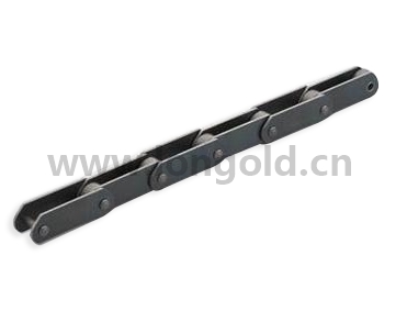 通用輸送鏈為基礎,采用幅度較寬的鏈板和摩擦阻力較小的R滾子,在鏈板上可直接承載重量物的鏈條。是較為常用的一種輸送鏈條的形式。