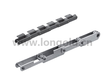 滾針套筒輸送鏈在銷軸和套筒之間采用了滾針軸承,將節距拉伸抑制到極限的鏈條。最合適在需要精確定位或間歇運行的輸送。帶A2附件的滾針套筒輸送鏈,即為單側帶翼板(翼板上有2個螺孔)的滾針套筒輸送鏈。
