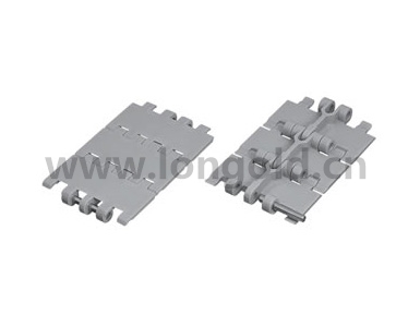 采用了前后連接件之間間隙較小的梳齒狀板,最適合于不穩定容器的輸送。頂板兩端進行小倒角加工,被卡住容器可橫向順暢移動。最大限度縮小鏈節~鏈節之間的空隙,提高頂板上面的平坦度,有效防止容器的不穩,倒落。基本尺寸與TTP826型相同,僅更換鏈條即可實現容器的穩定搬運。